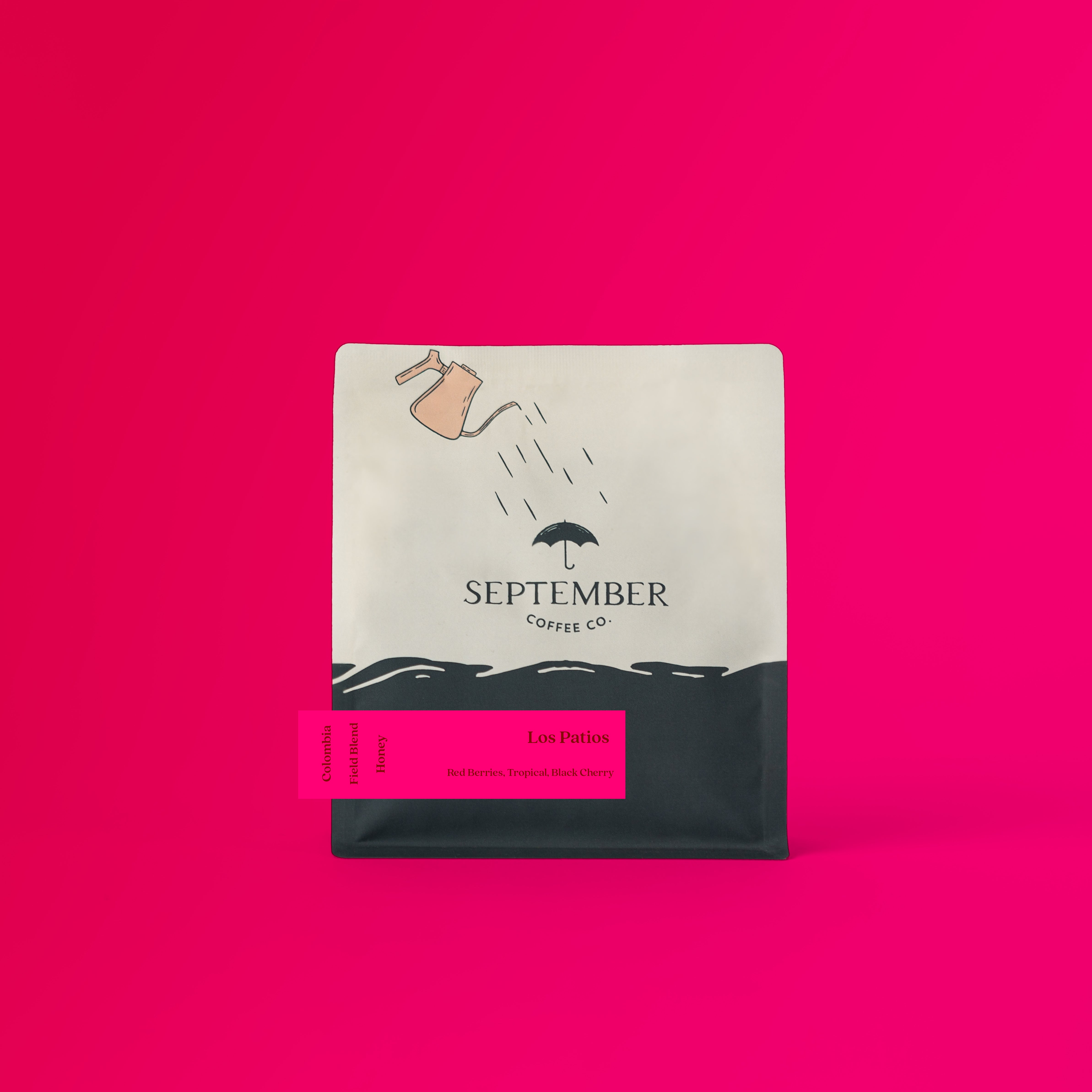 Los Patios undergoes a process developed by Coffee Quest called, "Solsticio". It undergoes multiple fermentation stages. It starts with a communal lot of various varieties, Castillo being the main one. After an aerobic fermentation of at least 12 hours at the farm the cherries are de-pulped and brought to Los Patios. A solution is prepared and undergoes an external controlled fermentation, before being added to the coffee, so that all available precursors are ready for the next step. In the final stage of fermentation the solution is added to the de-pulped cherries. This fermentation is mixed, with an initial aerobic phase right at the beginning for 5 hours, and then an anaerobic phase for another 12 hours. This controlled mixed fermentation creates the profile Solsticio, while preserving the bean’s physical quality and color. The coffee is followed by a controlled drying stage in Los Patios for 12 – 16 days, with constant movement and rotation to ensure an even drying. After it reaches 10-11 % moisture, the coffee is stored and stabilized in GrainPro bags, which has been shown to improve and enhance the profile of this lot.