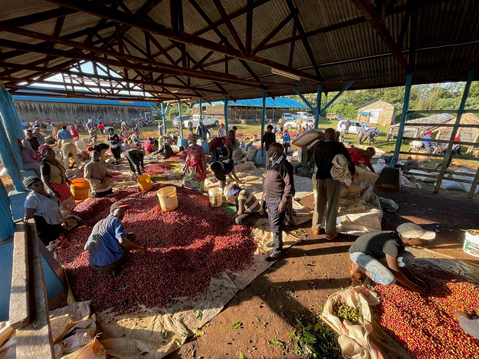 The Karimikui factory is located at a high altitude in an area where tea is more commonly grown than coffee. It is a member of the Rungeto FCS, a cooperative that is known for producing some of the highest-performing coffees in Kenya. Hundreds of smallholders deliver ripe cherries to this station every year where the factory team manually sorts them before production. Selected cherries are de-pulped and graded before the coffees undergo a period of dry fermentation in tanks. After fermentation, the coffees are washed in clean channels. A period of soaking (second wash) occurs shortly after to ensure the development of flavours can reach their full potential. In the final stage, the coffees are placed on raised beds to dry where they get covered with plastic throughout the hottest part of the day and overnight. Workers periodically rotate the coffees at this stage to ensure the coffees dry evenly. The final cup is incredibly sweet, intense, and reminiscent of black currant and sweet citrus. It is the nutrient-dense soil in this area paired with the immaculate processing method used at this factory that makes this coffee consistently high-performing year after year.